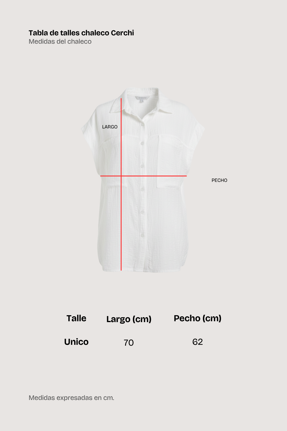 El Chaleco Cerchi está confeccionado en gasa doble 100% algodón, una textura natural y liviana que aporta frescura y movimiento.