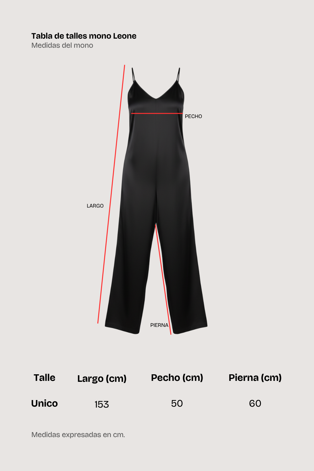 El Mono Leone está confeccionado en satén premium, un tejido liviano, suave y con caída fluida que aporta elegancia sin esfuerzo.